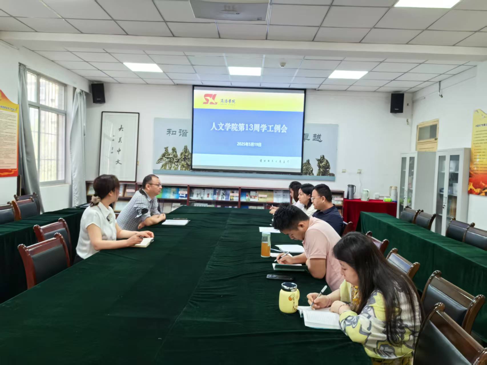 5月19日,人文学院召开2025年春季学期第13周学生工作例会,统筹推进各项工作任务。会议由人文学院党委书记刘麦霞主持,党委副书记王刚和全体辅导员参会。