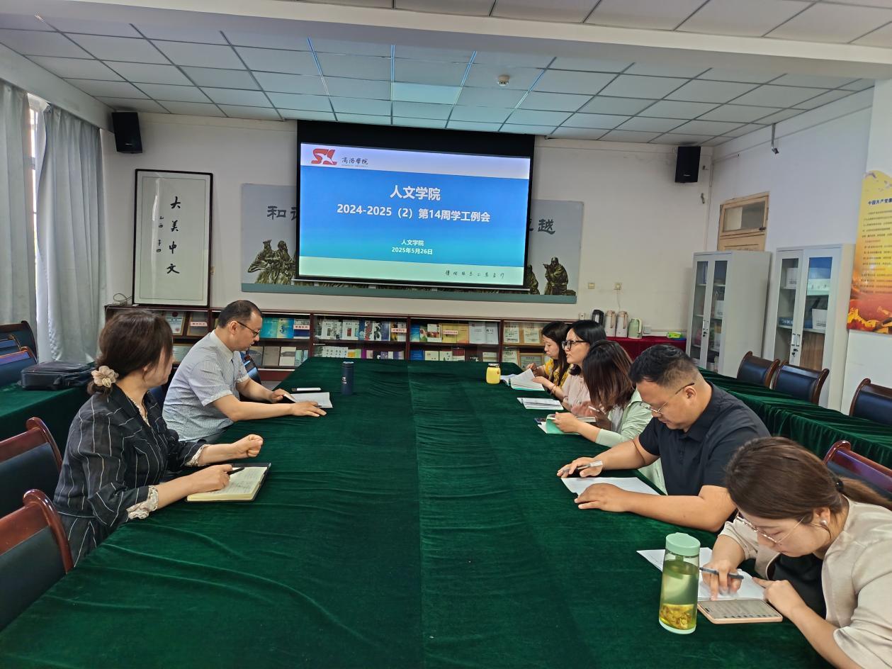 5月26日,人文学院在1号楼206会议室召开2025年春季学期第14周学工例会,统筹推进各项工作任务。会议由院党委书记刘麦霞主持,院党委副书记王刚和全体辅导员参加了会议。