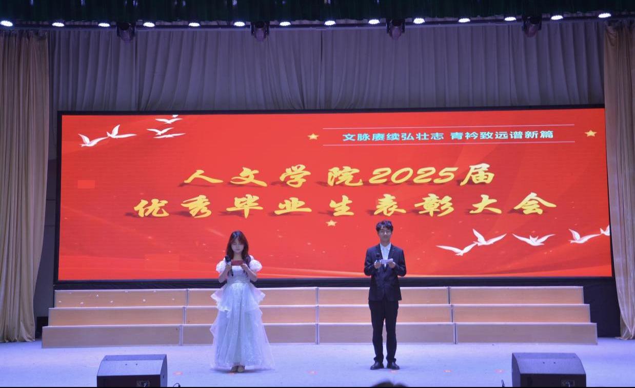 骄阳盛夏芳华绽,厚谊师恩岁月铭。6月16日,人文学院在大学生活动中心举办“文脉赓续弘壮志,青衿致远谱新篇”2025届优秀毕业生表彰大会。人文学院班子成员及全体教师与2025届受表彰学生、2026届学生代表一起参加了会议。