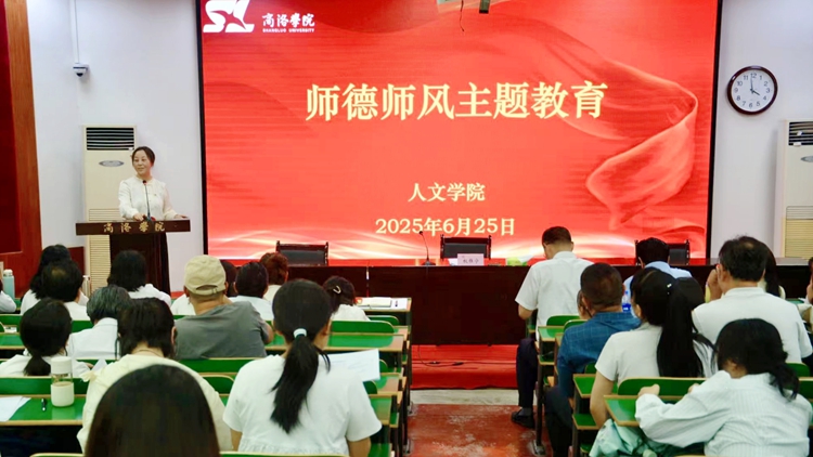 为加强学院师德师风建设,6月25日下午,人文学院在1号教学楼报告厅2召开师德师风主题教育会议,学院班子成员和全体教师参加会议。会议由学院党委书记刘麦霞主持。