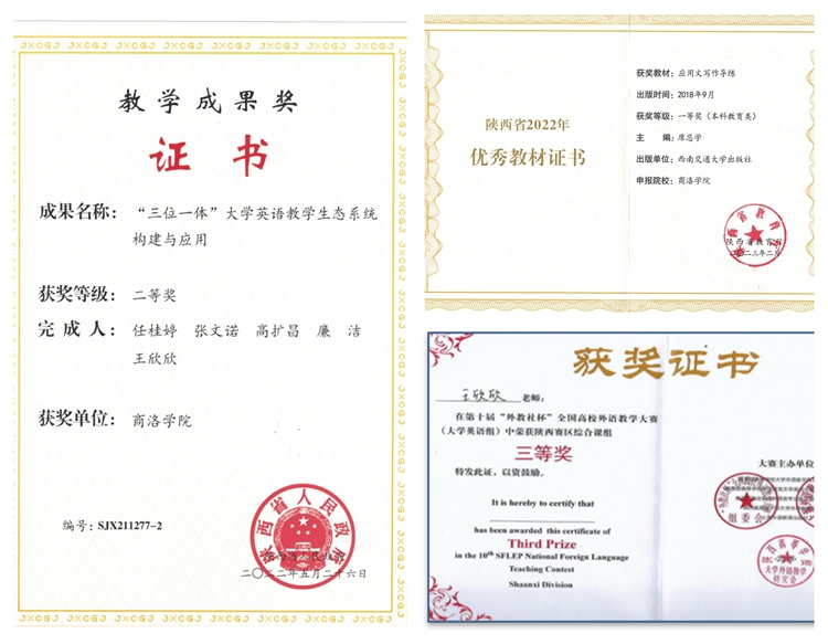 学院还先后获得“陕西省校园文化建设一等奖”“陕西省师德建设先进集体”“陕西省教育系统创佳评差‘文明单位’”“陕西省语言文字工作先进集体”以及商洛学院“先进集体”等各类奖励和荣誉60余项。