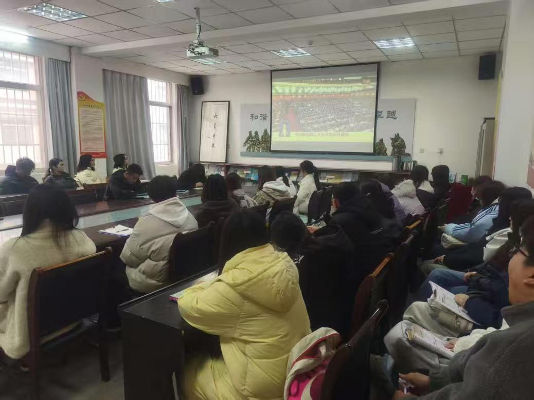 上午9时,会议在庄严的《中华人民共和国国歌》声中拉开帷幕。师生全体起立,奏唱国歌。 接下来,师生们聚精会神聆听国务院总理李强政府作的工作报告,认真记录要点。报告全面回顾了2024年我国经济社会发展成就,明确了2025年政府工作目标及任务。报告强调“高质量发展”“青年人才培养”“科技创新”等核心任务,为高等教育与学科建设指明方向 。