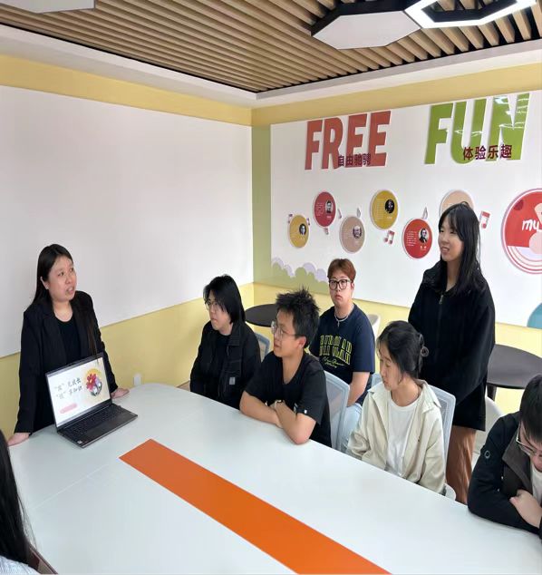 在轻松愉悦的讨论交流环节,同学们围绕学业规划、职业发展等话题展开自由讨论。吴娜老师通过趣味游戏引导大家分享学习困惑与成长感悟,现场笑声不断。此外,吴娜老师还鼓励学生在便利贴上写下短期目标,强化自我激励,进一步将情感建设与学习支持相结合,激发学生学习的内生动力。