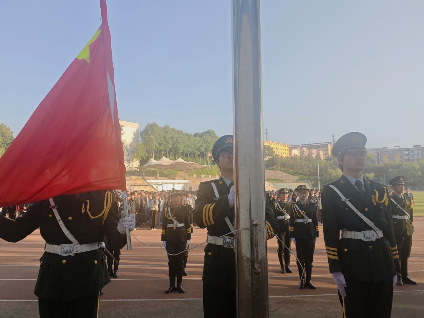国旗猎猎,步履铿锵。国旗护卫队迈着整齐有力的步伐,护送五星红旗走向升旗台。随着国歌奏响,五星红旗冉冉升起,我院升旗仪式正式拉开帷幕。师生们庄严肃立,向国旗行注目礼,表达对祖国的崇高敬意与深切热爱。