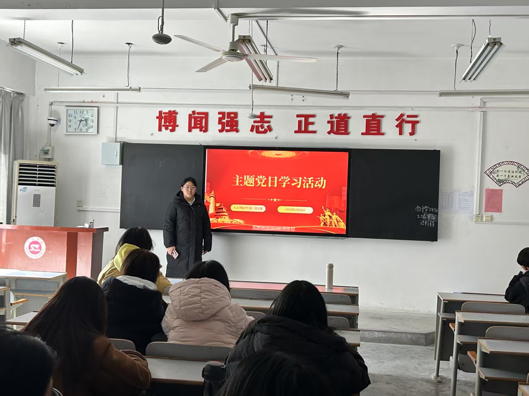 为增强学生党员及入党积极分子的政治素质,提升学生党员理论水平,按照校党委统一安排,2月26日,人文学院学生第二党支部开展了主题党日活动,支部全体党员及入党积极分子参加,活动由党支部书记郝东主持。
