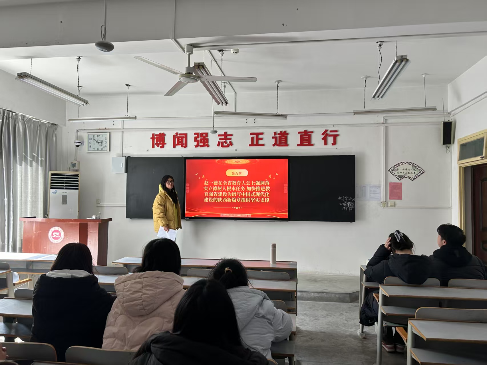 学生党员张嘉怡带领全体党员学习了《习近平总书记在中共中央政治局民主生活会上的重要讲话精神》《习近平总书记在二十届中央纪委四次全会上的重要讲话精神》《中共中央办公厅关于推进党纪学习教育常态化长效化的意见》、第二十八次全国高校党的建设工作会议精神、2025年全省教育大会精神等内容。