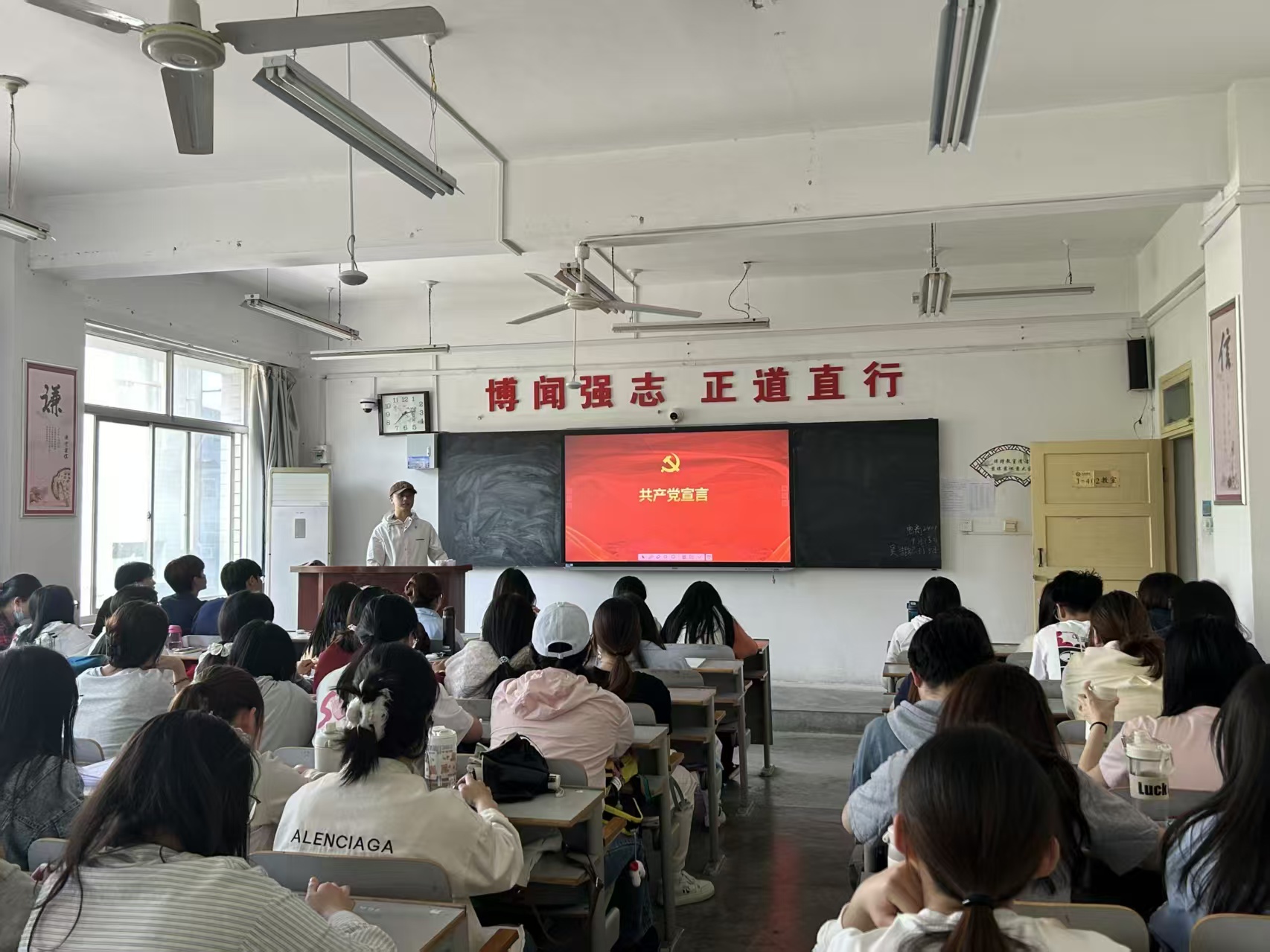 彭钰洁、韩雨馨、黄丽玲三名党员围绕红色经典展开分享。《觉醒年代》以1915年至1921年历史为轴,生动呈现陈独秀、李大钊等知识分子在新文化运动、五四运动中探寻救国之路的历程,全景展现马克思主义早期传播与中国共产党创建的艰辛。三位党员结合书籍创作背景与时代意义,深入浅出解读书中共产党员的斗争精神,引发在场积极分子强烈共鸣。